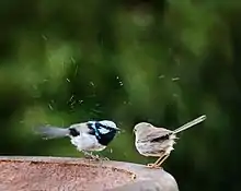 - Langmore NE, Mulder RA. (1992): A novel context for bird vocalization: predator calls prompt male singing in the kleptogamous superb fairy-wren, Malurus cyaneus. Ethology 90(2):143—153.