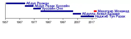 3 апреля 2009 | 10 мая 2018 | Объединённая малайская национальная организация | 2013 | Власть перешла к другой партии |