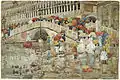 Типичный сюжет живописи Прендергаста — праздные, отдыхающие, нарядно одетые люди. Прендергаст считается одним из лучших американских акварелистов своего времени, хотя в поздние годы он всё более тяготел к живописи маслом.
