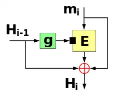 Односторонняя функция сжатия Миагути — Пренеля является расширенным вариантом аналогичной функции Matyas-Meyer-Oseas. Это была функция, независимо предложенная Бартом Пренелем и Сёдзи Миагути.