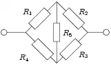 Преобразование треугольник-звезда может быть полезным для расчёта сопротивления несбалансированного моста при .
