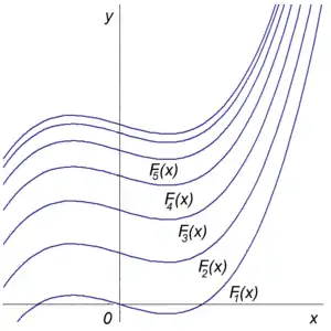 Графики функций,смещенные вверх параллельным переносом f(x) = 3x2 − 2. Все они расположены друг задругом.