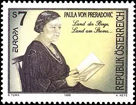 Паула Прерадович изображена на австрийской почтовой марке 1996 года.