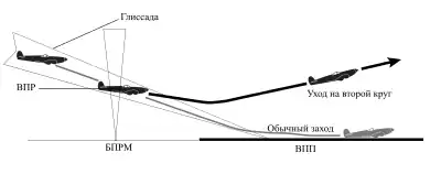 Заход на посадку прерывается и выполняется уход на повторный заход при следующих условиях (согласно ФАП[1]):