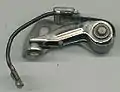 - Контакты прерывателя в определённый момент размыкаются, разрывая первичную цепь обмотки катушки зажигания, что вызывает индуцирование тока высокого напряжения в её вторичной обмотке. Параллельно контактам подключен конденсатор для уменьшения искрения.