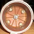 Крышка распределителя четырёхцилиндрового двигателя, вид сверху.