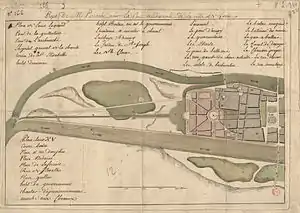 Наконец, 9 апреля 1766 года свой проект выдвигает лионский скульптор Антуан-Мишель Перраш. План предусматривает смещение места слияния Роны и Соны на 2 километра южнее и осушение всей получившейся площади[10], что позволит удвоить площадь Прескиля[4]. 13 октября 1770 года Перраш получает согласие городского совета, а ровно через год — 13 октября 1771 года — получает соответствующий патент[12]. Однако из-за смерти Перраша в 1779 году компания стала испытывать финансовые трудности и так и не смогла реализовать полностью проект. Управление компанией на какое-то время берёт на себя сестра основателя Анн-Мари, затем в 1782 году — граф Эсперанс де Лоренсен. В 1783 году наводнение сносит уже возведённый компанией деревянный мост через Сону. 23 сентября 1784 года граф Лоренсен обращается за помощью к Людовику XVI и передаёт ему право собственности на всю южную оконечность будущего полуострова — примерно от нынешней улицы Рампар д’Эне и станции метро Ампер — Виктор Гюго. Король обязуется выделить 300 000 ливров в течение двух лет на оплату долгов акционеров и строительство каменного моста. Однако сперва очень холодная зима 1788—1789 годов, затем революционные потрясения не позволяют закончить работу[13]. Компания успевает построить только одну набережную, которая сейчас носит имя Перраша[14]. Полностью переустройство междуречья, которое с тех пор называется Прескиль (фр. Presqu'île — полуостров), было завершено лишь к 1841 году[3].