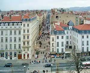 Улица Репюблик (Республики, фр. rue de la République) — главная улица северной части Прескиля, прорезающая её с севера на юг. Разработка проекта происходила в 1841—1853 годах, строительство — во времена Второй империи, с 1854 по 1865 годы. Лионским мэром Клодом-Мариусом Вайссом были предприняты меры, вошедшие в историю под именем османизации в честь другого французского градоначальника той же эпохи. При прокладке улицы были снесены 289 старых здания, переселены 12 000 человек и возведено 32 410 м2 жилой площади. Появилась широкая прямая улица с выстроенными в подобном стиле, но различающимися между собой богато украшенными 5—6-этажными домами с мансардами и обязательными торговыми помещениями на первом этаже. C 1970-х годов значительная часть улицы — пешеходная[27].