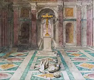 Традиционный Алтарь Победы был удален из Сената во время визита Констанция в Рим в 357 году[9][10]. Часто обычные христиане совершали разрушения, грабежи, осквернение, вандализм многих древних языческих храмов, гробниц и памятников.