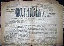 - «Молдованул» (Молдаванин) — газета на молдавском языке, финансировавшаяся губернскими властями. Выходила с 14 января 1907 г. по 15 октября 1908 г. Редактор-издатель — Г. В. Мадан. Первоначальной целью издания была борьба с революционными и сепаратистскими идеями, которые пропагандировала «Basarabia»[10]. Однако, после закрытия последней, вокруг «Молдованул» стали группироваться умеренные националисты из «Молдавского общества» П. Дическу.