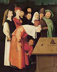 Религиозно-мистическое направление представляли обвешанные иконками и амулетами нищие, которые рассказывали о своём паломничестве в Палестину или Рим. Попутно они продавали баночки с «иорданской водой», щепки «Животворящего креста» и камушки с Голгофы. Такие попрошайки знали главные церковные песни и разбирались в вопросах религиозной догматики[31].