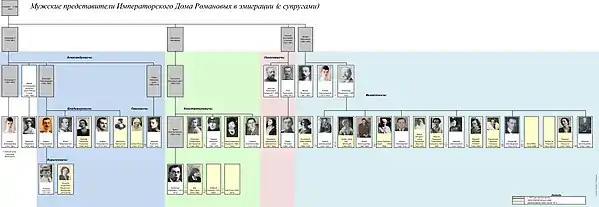 - Линия 3-го сына императора Александра II великого князя Владимира Александровича. Право на престол этой линии регулируется законами Российской империи и «Фамильным актом» 1874 г.