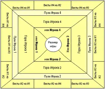 - игра на взятки — один из участников (именуемый в этой раздаче «игрок») обязуется взять объявленное им число взяток, остальные («вистующие») стремятся помешать этому;