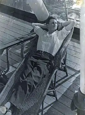 ![]() Автопортрет М. Г. Прехнера в шезлонге | |