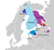 | финский язык, ижорский язык, карельский язык, вепсский язык, водский язык, эстонский язык, ливский язык, мерянский язык †, «северофинский» субстрат Русского Севера † | |