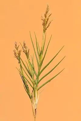Цветки образуют однобокие колосовидные метёлки.