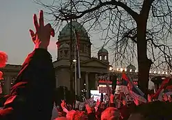 Приветствие тремя перстами (серб. Поздрав са три прста), также сербское троеперстие, четницкое троеперстие — сербское национальное приветствие одной рукой с открытыми большим, указательным и средним пальцами. Чаще всего демонстрируется правой рукой.