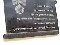 - в честь приднестровских женщин с текстом: «Здесь с 1 сентября по 1 октября 1991 года приднестровские женщины осуществляли блокаду железной дороги, отстаивая независимость Приднестровской Молдавской Республики». Открыта 16 августа 2011 года к 20-летней годовщине создания Женского забастовочного комитета Приднестровской республики[5].