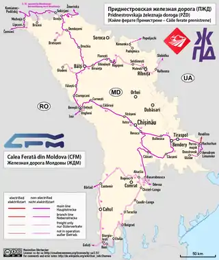 В августе 2004 года — в связи с обострением отношений между Молдавией и Приднестровской Молдавской республикой последней было создано государственное унитарное предприятие «Железная дорога Приднестровья» (станции Тирасполь, Бендеры и Рыбница), которое вышло из состава Молдавской железной дороги[3].