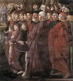 Белобородый мужчина слева, возможно, учёный из Константинополя, также послужил моделью для фрески Гирландайо «Святой Иероним в келье» в Церкви Всех Святых во Флоренции. Человек в центре, прямо за Иисусом — Диотисальви Нерони, укрывшийся в Риме после провала заговора против Пьеро ди Козимо де Медичи. Справа запечатлён ещё один известный человек — Иоанн Аргиропул, бежавший во Флоренцию из Константинополя, а потом переехавший в Рим из-за чумы.