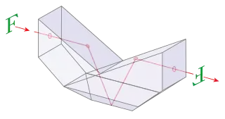Призма состоит из двух стеклянных призм, которые оптически склеены вместе, образуя симметричную неглубокую V-образную форму. Свет попадает в одну грань при нормальном падении, внутренне отражается от грани с наклоном 30 °, а затем отражается от секции «крыши» (нем. Dach) (состоящей из двух граней, встречающихся под углом 90 °) в нижней части призмы. Затем свет отражается от противоположной грани под углом 30 ° и выходит снова при нормальном падении.