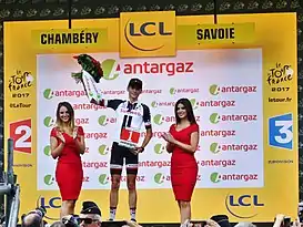 Награждение текущего лидера зачёта по окончание этапа
