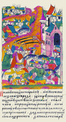 ![]() «И как подошли к Юрьеву, то тут вышли из города и встретили воевод пешие и конные немцы, около 500 человек, и выступили против передового отряда; а в нем были головы — князь Никита Приимков и Дмитрий Пушкин, сын Шафериков» | |
