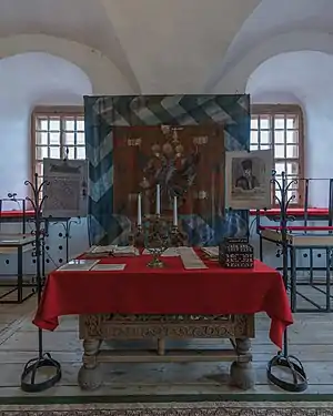 Одна из палат нижнего этажа либо подвальные помещения предназначалась для содержания колодников. На верхнем этаже находились дьяческая палата и палата воеводы.