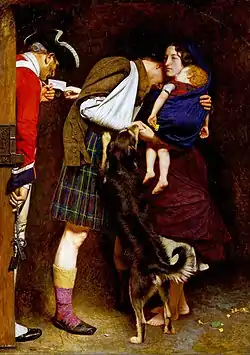 Картина изображает верную жену шотландского солдата, который был заключен под стражу после восстания якобитов, пришедшую с приказом о его освобождении. Она показана стоящей лицом к стражнику, держащей своего ребенка, в то время как муж обнимает её.