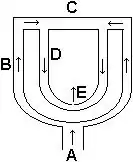 Принцип работы схож с принципом работы паяльной лампы. Горючее из резервуара A под давлением воздуха, создаваемым перед розжигом с помощью воздушного поршневого насоса и затем поддерживаемым за счёт нагрева (также требуется периодическая «подкачка»), поступает в трубчатую часть горелки B, где предварительно нагревается; затем в трубке D испаряется, пары топлива выходят через форсунку E. Затем пары горючего смешиваются с воздухом и сгорают в конфорке C. Для нормального испарения топлива необходимо чтобы поддерживалась высокая температура горелки, поэтому перед началом работы требуется прогрев. Для этой цели в некоторых примусах вокруг горелки есть специальная чашечка, в которой при розжиге сжигают налитое топливо или несколько кусков сухого горючего.