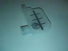 - Ремня привода каретки. На некоторых принтерах вместо зубчатого ремня можно обнаружить гибкую стальную ленту. Лента не имеет зубьев, создающих вибрации при вхождении в ведущую шестерню, и обеспечивает более плавное движение каретки, но в сравнении с ремнём имеет меньший ресурс, отследить расход которого невозможно, так как лента, в отличие от ремня, не начинает крошиться перед разрывом, а рвётся сразу. На некоторых принтерах каретка приводится в движение стальным тросиком, намотанным на двухсекционную катушку.