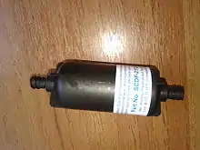 В принтерах, печатающих УФ-отверждаемыми чернилами, используются фильтры с непрозрачным корпусом —это предотвращает отверждение краски в фильтре при случайной засветке.