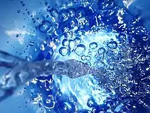 Вода — химическое соединение, состоящее из водорода и кислорода и необходимое для жизнедеятельности всех известных форм жизни[23]. Обычно водой называют лишь жидкое состояние этого вещества, но существуют также твёрдое состояние (лёд) и газообразное — водяной пар. Вода покрывает 71 % поверхности Земли и сосредоточена главным образом в океанах и других крупных водоёмах[24]. Помимо этого приблизительно 1,6 % воды находится под землёй в водоносных горизонтах и около 0,001 % — в воздухе в виде пара и облаков (образованных из твёрдых и жидких частиц воды), а также атмосферных осадков[25]. Океаны содержат 97 % поверхностных вод, ледники и полярные шапки — около 2,4 %, реки, озёра и пруды — оставшиеся 0,6 %. Кроме того, незначительное количество воды на Земле содержится в биологических организмах и выпускаемой человеком продукции.