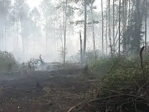 С конца июля по начало сентября 2010 года в России на всей территории сначала Центрального федерального округа, а затем и в других регионах России возникла сложная пожарная обстановка из-за аномальной жары и отсутствия осадков. Торфяные пожары Подмосковья сопровождались запахом гари и сильным задымлением в Москве[1] и во многих других городах. По состоянию на начало августа 2010 года, пожарами было охвачено около 200 тыс. га в 20 регионах России. Торфяные пожары были зафиксированы в Московской области, Свердловской, Кировской, Тверской, Калужской и Псковской областях.[2] Сильнейшие пожары были в Московской, Рязанской, Нижегородской областях и Мордовии, где произошла настоящая катастрофа.