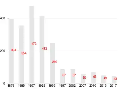 | 1879 | 1885 | 1909[19] | 1928 | 1965 | 1997 | 2007[20] |