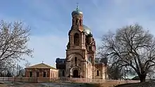 Церковь Покрова Богородицы[3][4] в псевдовизантийском стиле 1896 года. Закрыта в 20-х годах XX века.