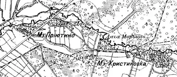 ПРИЮТИНСКАЯ — колония немецкая, при речке Лубье; 5 дворов, жителей 17 м. п., 17 ж. п. (1862 год)[23]