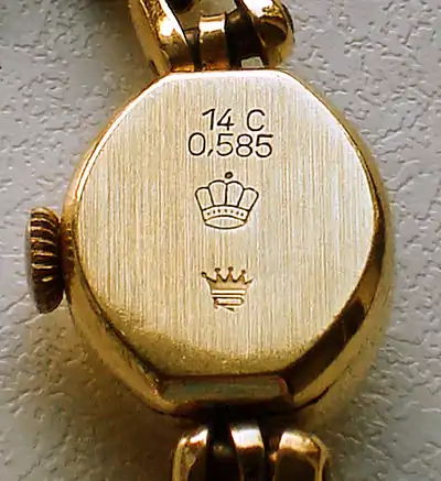 - 14 карат — масса благородного металла составляет 0,583 от веса сплава;