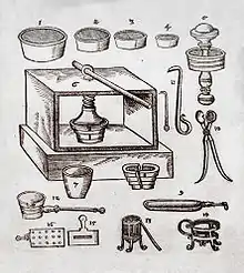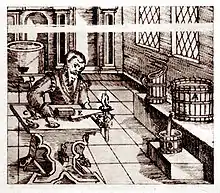 Приход ятрохимии (XVI век), оперирующей точными пропорциями и дозировками, предъявляющей достаточно строгие требования к детерминации и номинации используемых веществ — эти особенности основанной Парацельсом дисциплины закономерно сказались на развитии технической химии: изучение минеральных кислот, их воздействия на самые разнообразные вещества, упорядочение технологий и лабораторной практики, классификация реактивов и оборудования. На смену метафорическому языку алхимии, доступному избранным[9] начинает приходить научный тезаурус. Появляются труды, не только имеющие свойства формальных пособий, но и обладающие качествами источников, содержащих систематизированные на уровне опыта того времени научно обоснованные знания. В 1540 году Ванноччо Бирингуччо издаёт в Венеции труд «Пиротехния»[10], состоящий из десяти книг, в числе которых части, посвящённые рудничному делу, испытанию минералов, приготовлению металлов и металлических сплавов, их плавлению, пробирному искусству; он описывает способы очистки серебра методом купелирования. Это произведение В. Бирингуччо выдержало несколько переизданий. Георгий Агрикола, исследователь большой сферы интересов и приложений, сформулировал принципы минералогии и металлургии, которые имели применение до XVIII века; его важнейшие сочинения: «О горном деле и металлургии, 12 книг» (1530—1546), «О природе ископаемых, 10 книг», «О возникновении подземных тел и его причинах, 5 книг». В 1555 году Г. Агриколой было издано обширное руководства по пробирному делу. В числе других авторов следует назвать историка и филолога Андреуса Либавия, последователя Парацельса. Исследования А. Либавия способствовали не только развитию металлургии, изучению свойств серной кислоты, солей аммония, свинца и других веществ; они выразились рядом открытий (хлорное олово[11], янтарная кислота[12]). Он одним из первых проявил большой интерес к формированию новой химической терминологии, номенклатуры, рациональной организации химической лаборатории, В его «Алхимии» последовательно изложены принципы пробирного анализа, применяемые инструменты, реактивы и приёмы.
