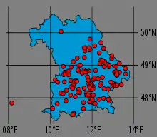 Города, в которых существует местный пробка-клуб. В качестве фона использован контур Баварии, поскольку именно там находятся почти все пробка-клубы.