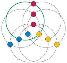 Для построения графа этого вида из свободного от арифметических прогрессий подмножества Беренда , нумеруем вершины в каждой доле от до и строим треугольники вида по модулю для каждого из интервала от до и каждое число принадлежит . Например, с и в результате получим сбалансированный трёхдольный граф с 9 вершинами и 18 рёбрами, показанный на рисунке. Граф, образованный путём объединения этих треугольников, имеет желаемое свойство, что каждое ребро принадлежит ровно одному треугольнику. Если бы это было не так, существовал бы треугольник , где , и принадлежат , что нарушает предположение об отсутствии арифметических прогрессий в [5].