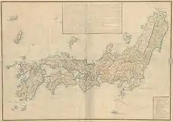 Первая информация об островах была получена японцами в ходе экспедиции на Хоккайдо и Сахалин в 1635 году. В 1644 году по итогам экспедиций 1635—1637 годов на Хоккайдо была составлена первая японская карта Сахалина и Курильских островов[7]. Составители карты представляли Курильскую гряду весьма смутно, они изобразили лишь небольшую группу островов к востоку от Хоккайдо[7].