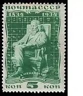| Марка СССР из серии «100 лет со дня рождения Д. И. Менделеева», 1934 (ЦФА [АО «Марка»] № 463) | |