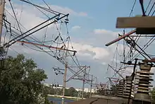 - Поражение электрическим током при проезде на электрифицированных линиях или при попытке запрыгнуть на крышу поезда с моста[88] в результате прикосновения или слишком близкого приближения к контактной сети, токоприёмнику, тормозным резисторам и токоведущим высоковольтным шинам на крыше подвижного состава.