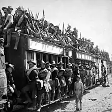 В период первой и второй мировых войн она часто была вынужденной мерой при транспортировке солдат и беженцев, поскольку даже использование крытых грузовых вагонов для перевозки людей (теплушек) наряду с пассажирскими зачастую не позволяло осуществлять достаточно быстрый переброс войск или эвакуацию населения, поэтому не поместившиеся внутри ехали на крышах и подножках поездов, а также в открытых грузовых вагонах.[8] В США распространённость достигла пика в 1930-е годы в результате Великой депрессии.[15][16]