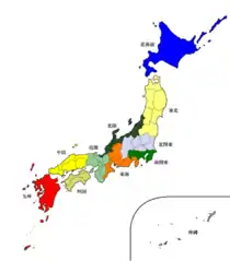 Проект деления на 13 административных единиц: Хоккайдо, Северное Тохоку, Южное Тохоку, Северное Канто, Южное Канто, Хокурику, Токай, Кинки, Тюгоку, Сикоку, Кюсю, Окинава