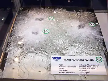 - Опытным путём было установлено, что оптимальная стойкость для калибра 7,62 мм обеспечивается при соотношениях масс силикатного и органического стекла приблизительно 50:50.