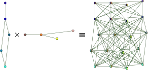 - Множество вершин графа H — это прямое произведение V(G1) × V(G2), где V(G1) и V(G2) являются множествами вершин G1 и G2 соответственно.