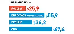 - Производительность труда в России сильно отстает от показателей Европы и США. Дата обращения: 21 мая 2013.
