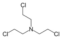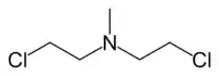 ![]() Метил-бис-(2-хлорэтил)амина гидрохлорид, известный также как «Нитроген мустард HN2», «газ HN2» или просто «HN2», хлорметин, мехлоретамин, мустин, мустарген, эмбихин |